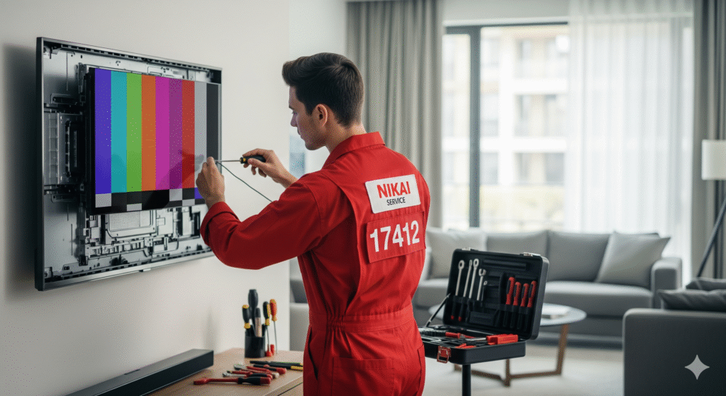 أيًا كان موديلك، احجز زيارة تشخيص عبر خدمة صيانة شاشات نيكاي 17412—نجيلك ونحلها من الباب.